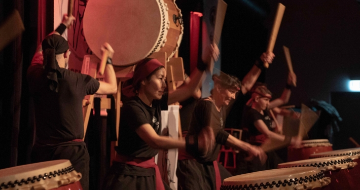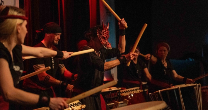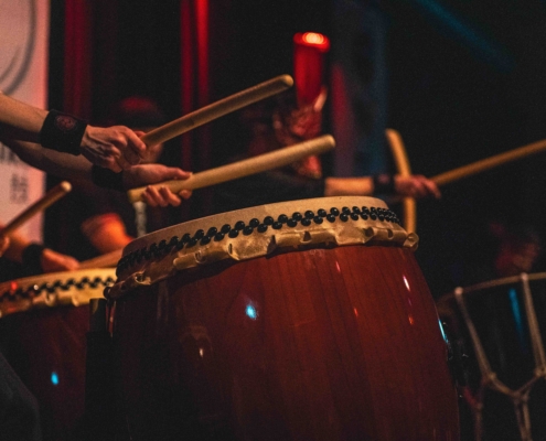 Das traditionelle japanische Trommeln (Wadaiko) verbindet in einzigartiger Art und Weise Energie, Anmut und Emotion mit Rhythmus und intensiver körperlicher Bewegung.