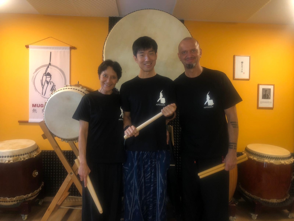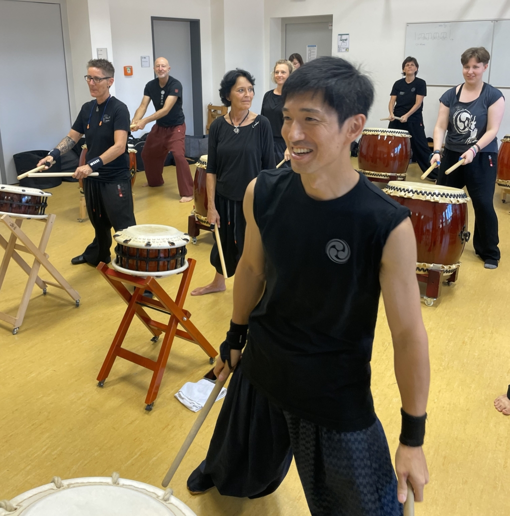 wurde 1981 in Tokyo geboren und begann mit 10 Jahren, das traditionelle japanische Trommeln zu erlernen. Nach dem Studium der Theaterwissenschaften konzentrierte er sich ganz auf den „Taikoweg“. Er lebt inzwischen auf Okinawa/Japan, wo wir ihn seit 2014 regelmäßig besuchen.