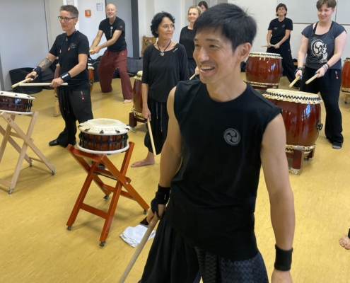 Ihr lernt Eintrommelblöcke unterschiedlicher Intensität und Komplexität. Dabei ist Kanazashi Sensei in der Lage, Taikospieler unterschiedlichen Niveaus gemeinsam anspruchsvoll zu fordern und zu fördern. Darüber hinaus werden wir viele Infos bzgl. des traditionellen japanischen Trommelns bekommen, da wir eine Übersetzerin in unseren Reihen haben werden.